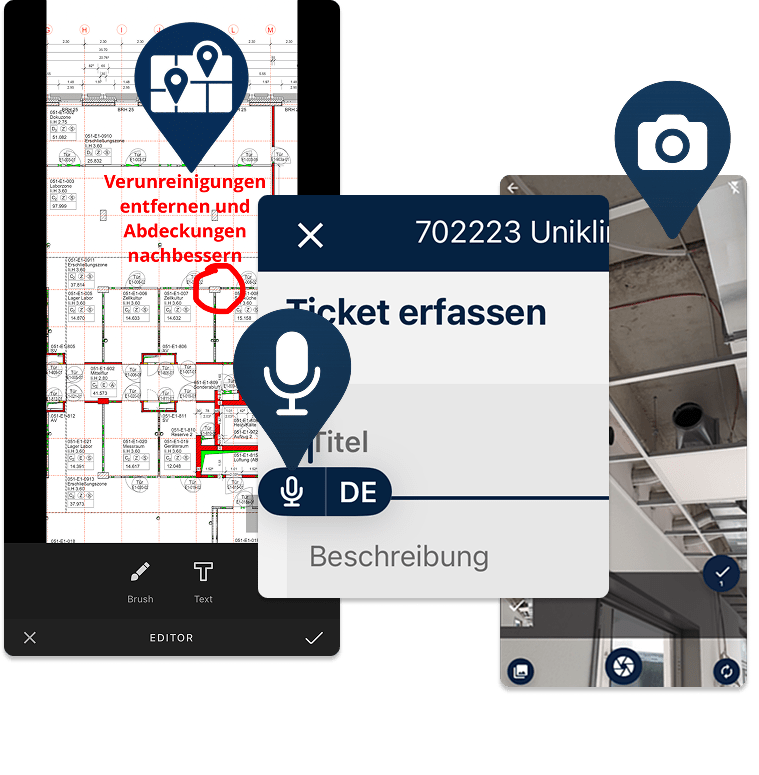 Ja. Jede Aufgabe kann direkt im digitalen Bauplan verortet und mit zusätzlichen Informationen wie Fotos, Sprachnotizen oder Textkommentaren ergänzt werden. Dadurch entsteht eine visuell nachvollziehbare, kontextbezogene Aufgabenbeschreibung – ideal für die Weitergabe an andere Beteiligte oder die spätere Dokumentation.