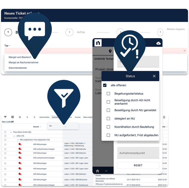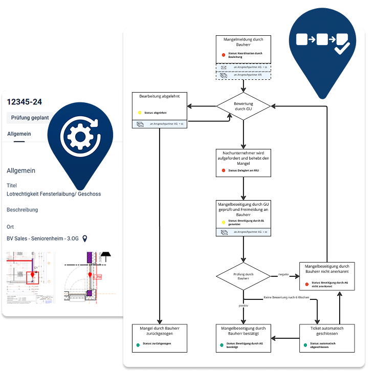 Mangelmanagement erleichtert die Erfassung und Verfolgung von Baumängeln, sorgt für klare Prozesse und unterstützt die Zusammenarbeit im gesamten Projektteam.