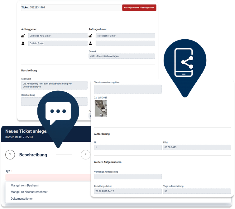 Mangelmanagement erleichtert die Erfassung und Verfolgung von Baumängeln, sorgt für klare Prozesse und unterstützt die Zusammenarbeit im gesamten Projektteam.
