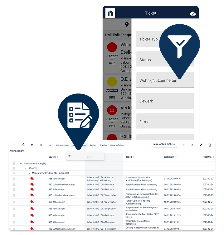 Mit der integrierten Filter- und Sortierfunktion kannst du Mängel ganz einfach nach Status, Fristen, Priorität oder Verantwortlichen verwalten. Wiedervorlagen und automatische Erinnerungen unterstützen dich dabei, keine Frist zu verpassen. Jeder Bearbeitungsschritt ist transparent nachvollziehbar, und du kannst direkt Kommentare, Fotos oder Dokumente ergänzen – für eine durchgängige, nachvollziehbare Kommunikation im gesamten Team.